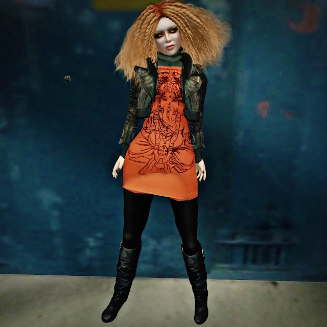 Most of what I'm wearing is Ronsem. It's all been around for a while and no mesh items. The new and exciting item is the Al Vulo skin gift of the month. It gives me a 'walk of shame' sort of vibe, lol. Sort of smeared eyeliner thing happening there. I thought the messy hair matched that look. Kinda like you lost your purse and your brush the night before the morning after.